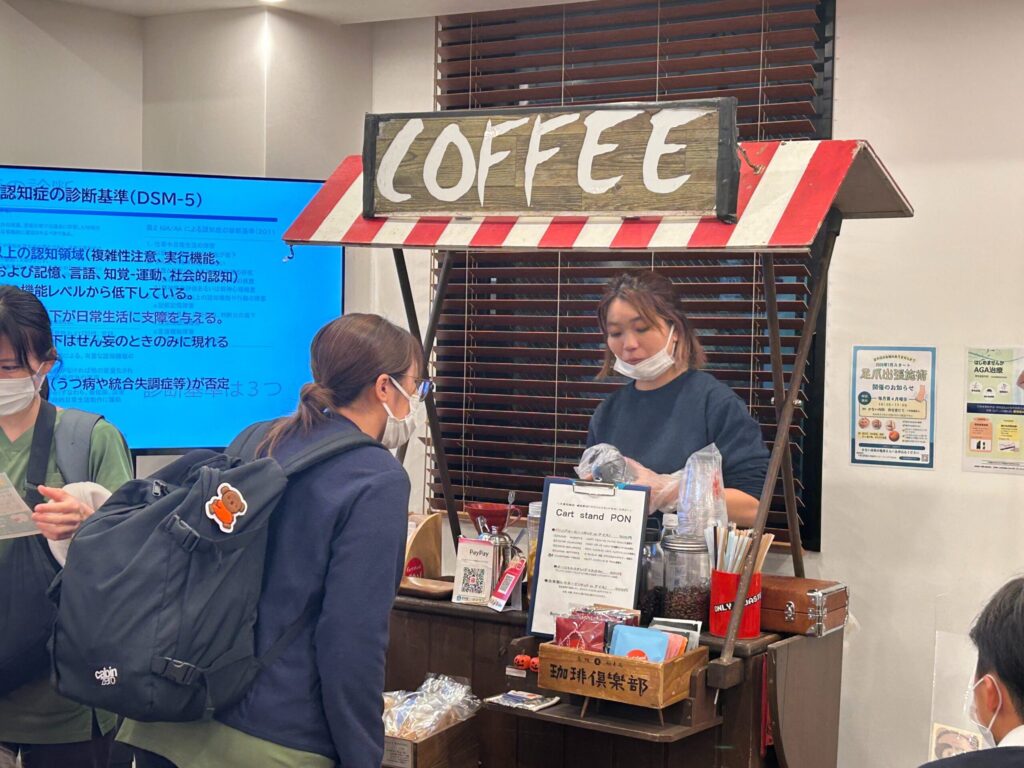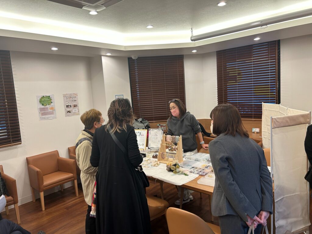地域のコーヒーショップやフットケアブースなどが出店しており、